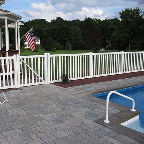 The Cargill is a distinctive look in pool fence with alternating pickets 1.5" wide and 3" wide spaced 3.7" apart. This fencing securely encloses your pool area without forgoing the feeling of openness. It is constructed in the USA from the highest quality premium vinyl, allowing for both superior strength and durability as well as eliminatiing the need for ongoing maintenance. Inside you will find the standard aluminum reinforcement in the bottom rail for added strength, durability and wind resistance. The Cargill is easy to install and requires minimal maintenance, making it a first-rate choice.